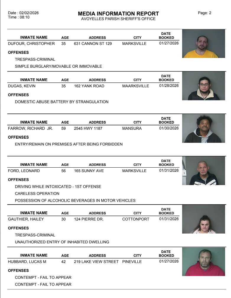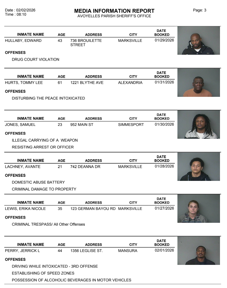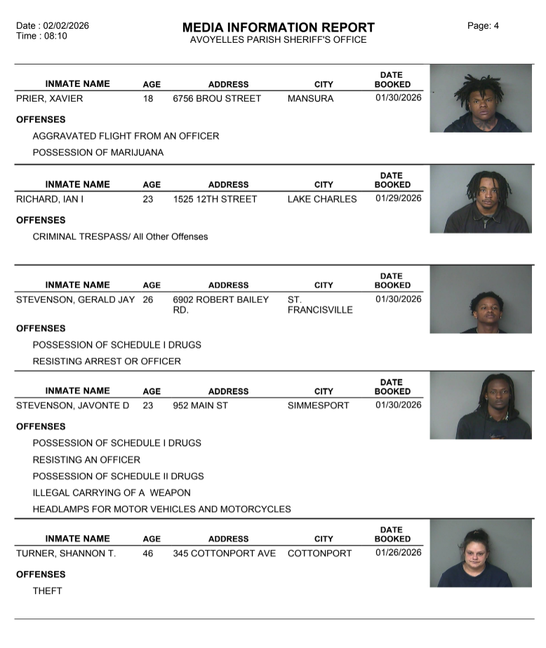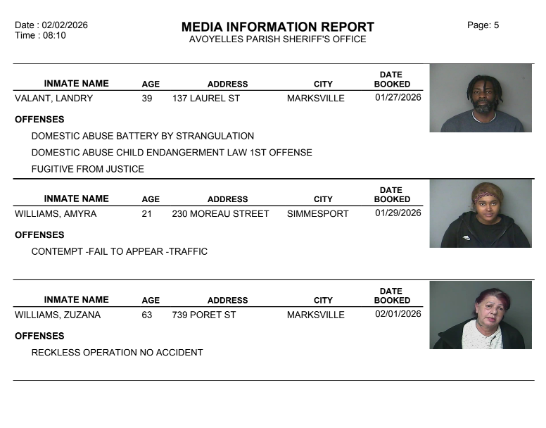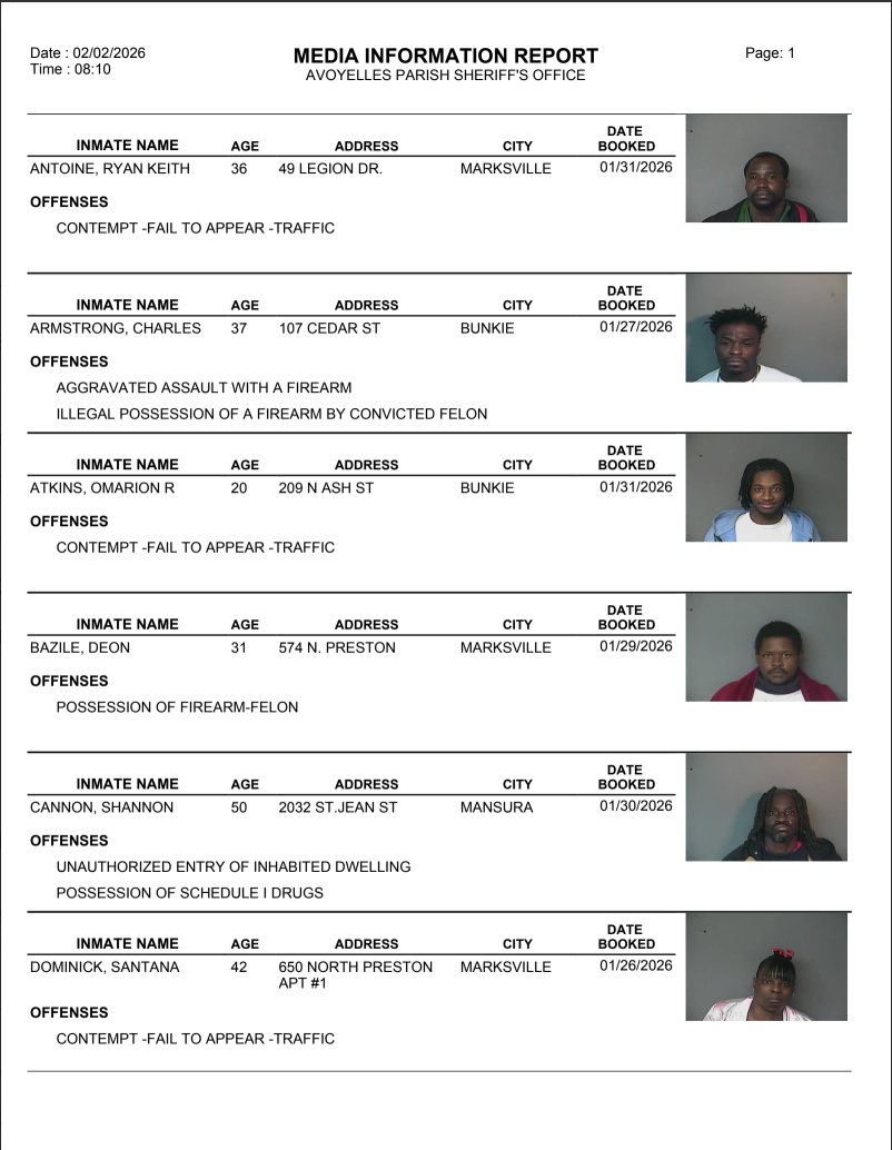 Media Information Report from the Avoyelles Parish Sheriff's Office