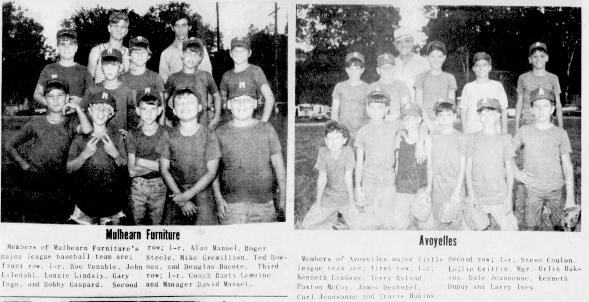Members of the Avoyelles major little league baseball team, as featured in The Bunkie Record on July 1, 1971.