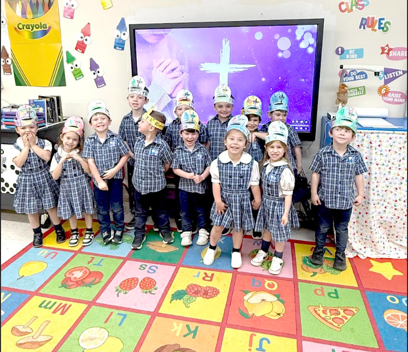Younger students at Sacred Heart School also took part in Lenten observances, learning about the meaning of Ash Wednesday in a hands-on way. Kristi Armand’s PK4A class created special hats representing the ashes received during church services as part of their religion lesson. The students proudly wore their creations to Mass, where they participated in the Ash Wednesday tradition.